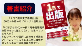 美月・出版作品1日で出版・ 副業電子書籍―50代から始めるプロンプト活用法― 第1章:なぜ「1日出版」が可能になったのか 電子書籍ストラクチャー・デザイン・シリーズ全5巻の「Vol.1 1日で副業電子書籍出版」では、なぜ、一日出版が可能なのか、その全貌についてわかります。 1. 「書くことの壁」を越える時代 ... 2025.10.26美月・出版作品電子書籍出版